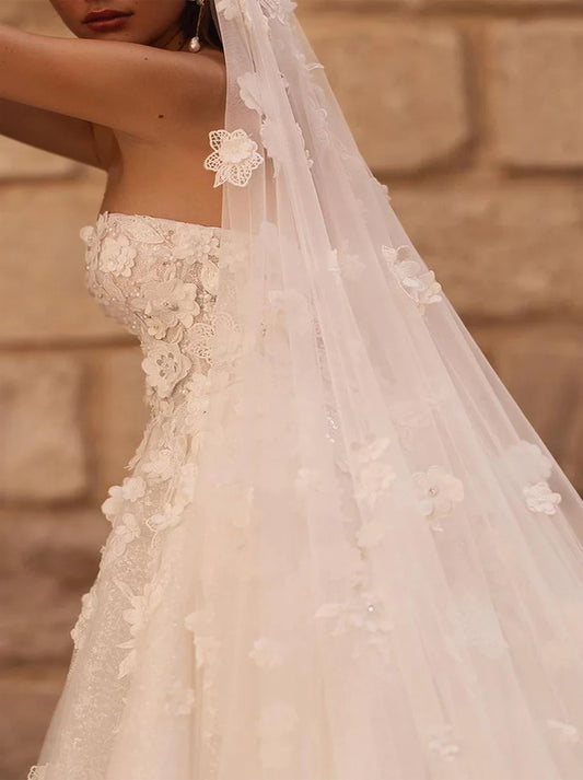 Classic A-Line Wedding Dresses Sweetheart Sleeveless Appliqued Tulle Sweep Train Bridal Gowns Custom Made With Slit