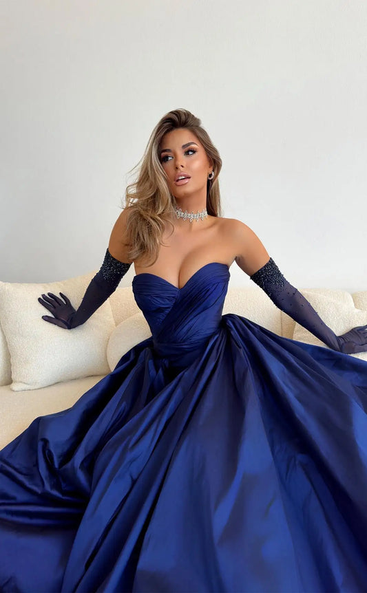 RP1196-New Royal Blue A-Line Sweetheart Ruched Long Sleeves Long Prom Evening Dresses Formal Party Gowns With Split