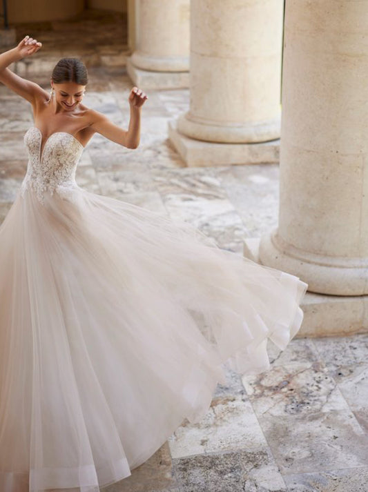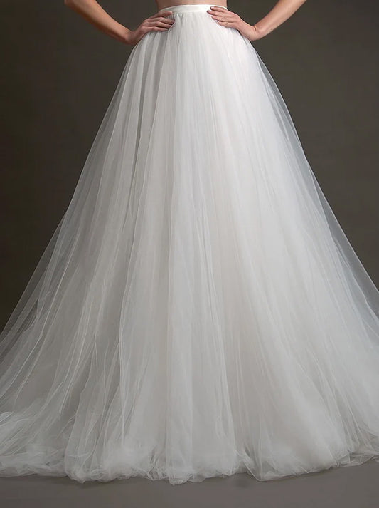 Ivory A-Line Wedding Dresses Strapless Appliques Detachable Illusoin Sleeves Court Train Tulle Bridal Gowns For Women