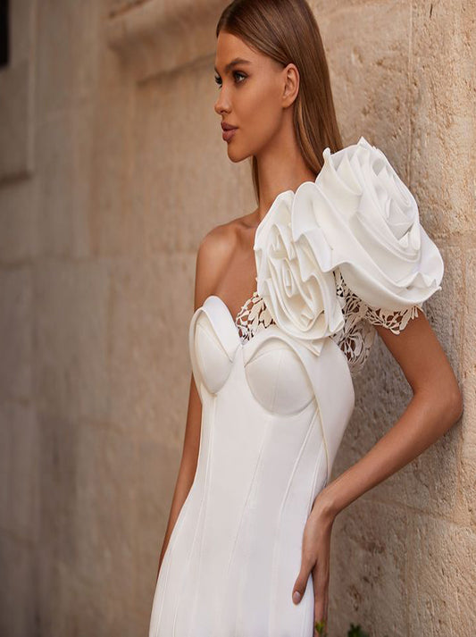 Simple Mermaid Wedding Dresses Sweetheart Pleated Handmade Flowers Satin Bridal Gowns Custom Made With Sweep Train