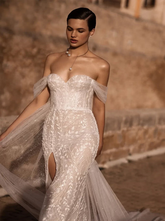 Sparkling & Elegant Mermaid Wedding Dresses Sweetheart Sequins Appliqued Beads Tulle Sweep Train Bridal Gowns With Side Slit