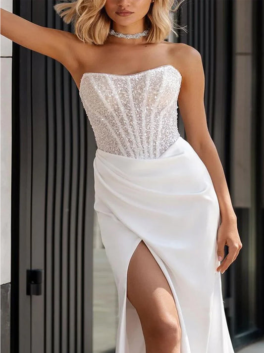 Sparkling Mermaid Wedding Dresses Sweetheart Sequins Sleeveless Satin Bridal Gowns Custom Made With Slit