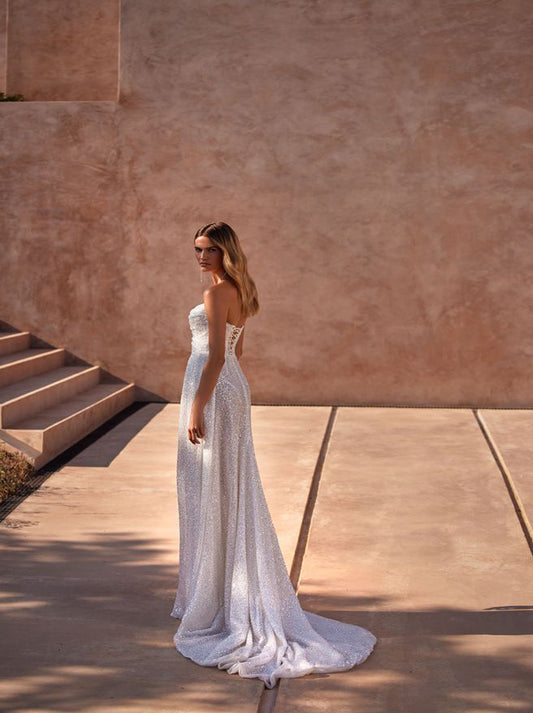 Sparkling Mermaid Wedding Dresses Spaghetti Sequins Sweep Train Bridal Gowns With Slit