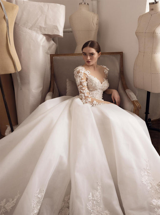 Charming & Elegant Ball Gown Boho Wedding Dresses Sweetheart Appliqued Beads Long Sleeves Court Train Bridal Gowns Custom Made