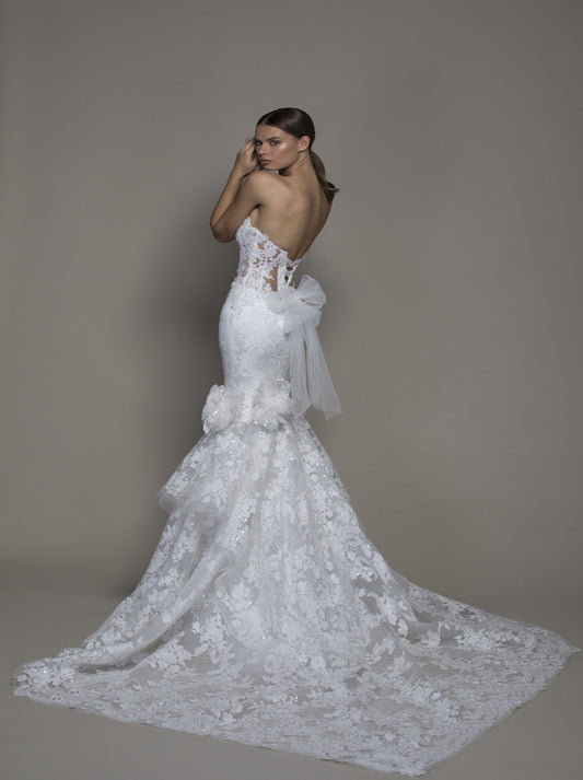 Charming & Elegant Mermaid Wedding Dresses Sweetheart Appliqued Ruffles Bowknot Tulle Sweep Train Bridal Gowns Custom Made
