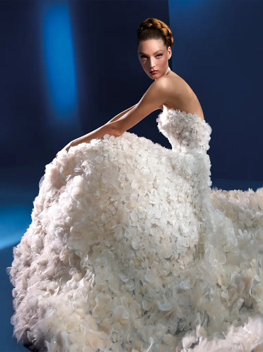 Charming A-Line Wedding Dresses Strapless Appliqued Flowers Sleeveless Tulle Sweep Train Bridal Gowns Custom Custom