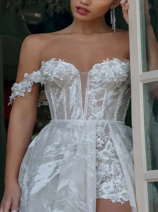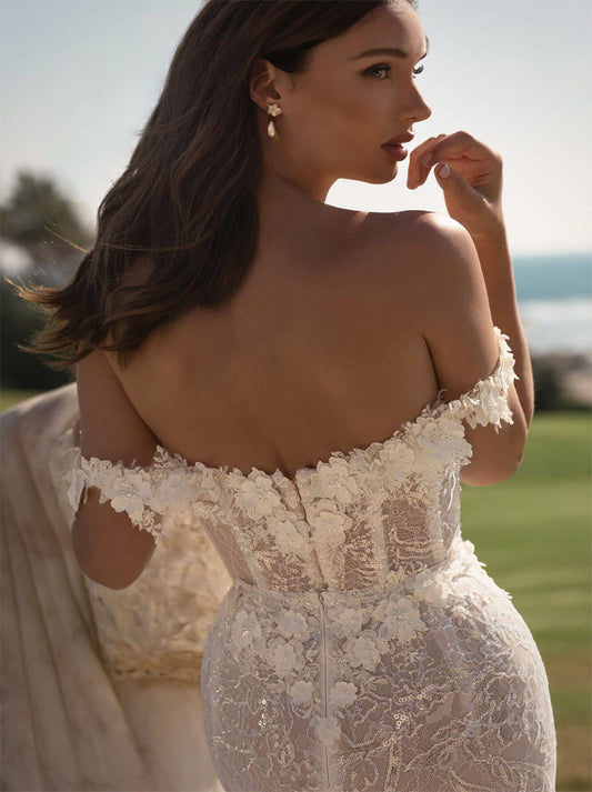 Classic & Sexy Mermaid Boho Wedding Dresses Sweetheart Beads Appliqueds Detachable Long Sleeves Sweep Train Tulle Bridal Gowns Custom