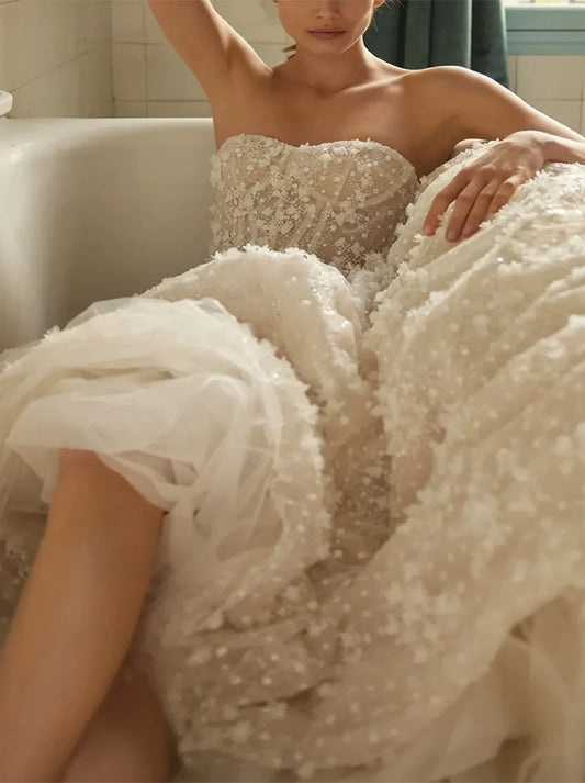 Classsic A-Line Beach Wedding Dresses Sweetheart Appliqued Beads Detachable Sleeves Tulle Sweep Train Bridal Gowns Custom