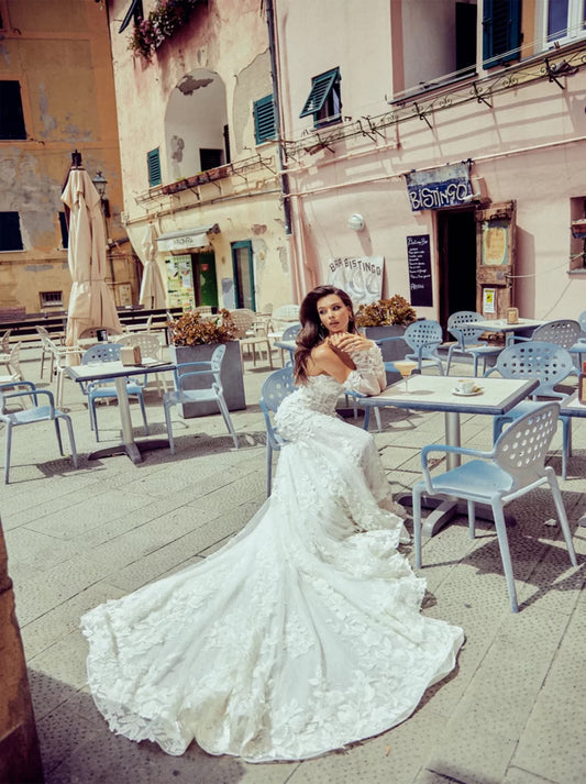 Elegant & Classic Mermaid Wedding Dresses Sweetheart Appliqued Beads Detachable Long Sleeves Tulle Sweep Train Bridal Gowns Custom