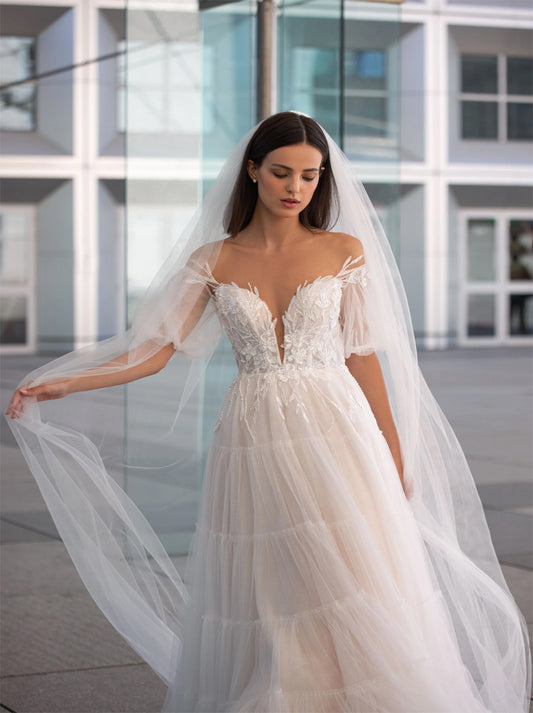 Elegant & Classic A-Line Wedding Dresses Sweetheart Appliqued Tulle Sweep Train Bridal Gowns Custom