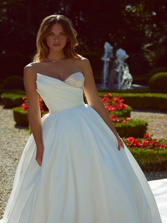 Simple & Elegant Ball Gown Boho Wedding Dresses Sweetehart Pleated Beads Satin Court Train Bridal Gowns