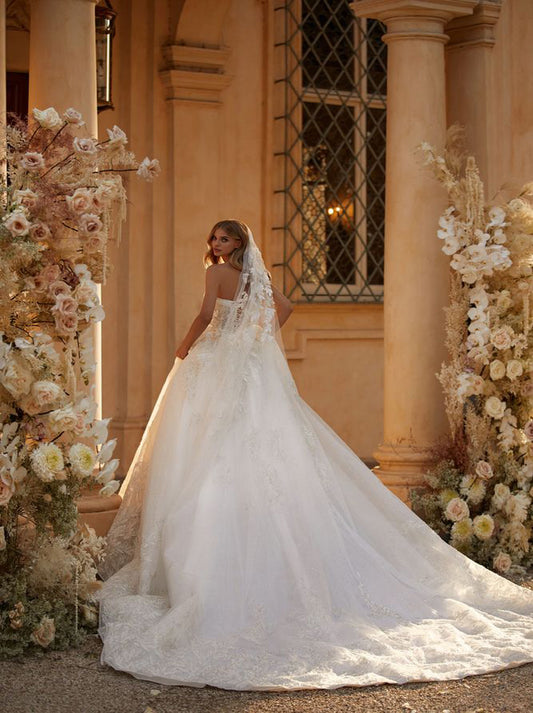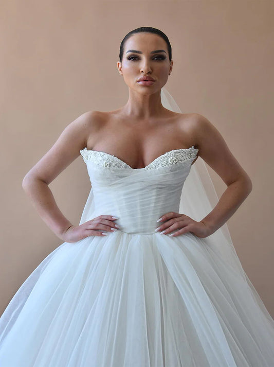 Simple & Elegant Ball Gown Boho Wedding Dresses Sweetehart Appliqued Tulle Court Train Bridal Gowns Custom Made