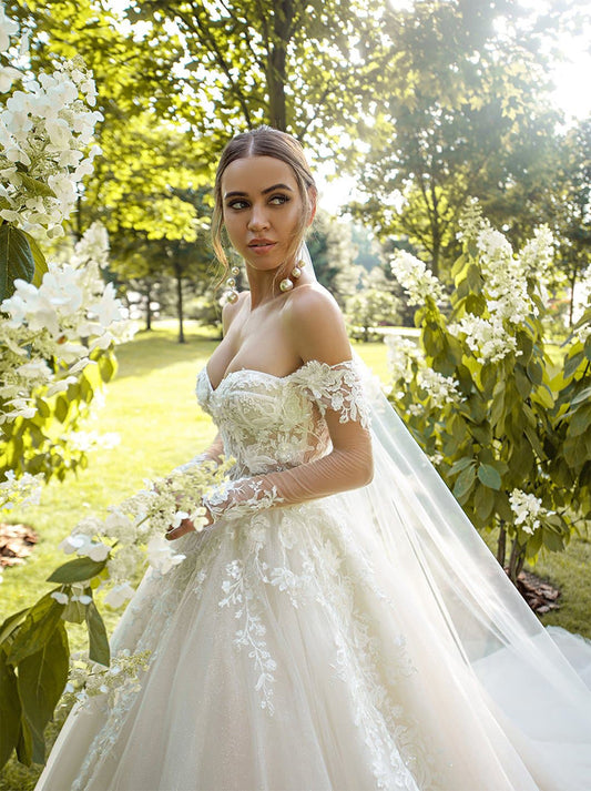 Gorgeous & Elegant Ball Gown Beach Wedding Dresses Sweetheart Appliqued Tulle Court Train Bridal Gowns Custom Made