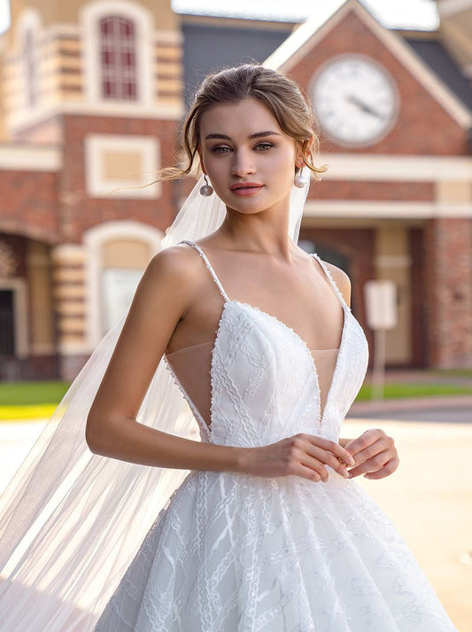 Simple & Elegant Ball Gown Boho Wedding Dresses V-Neck Applqued Tulle Court Train Bridal Gowns Custom Made