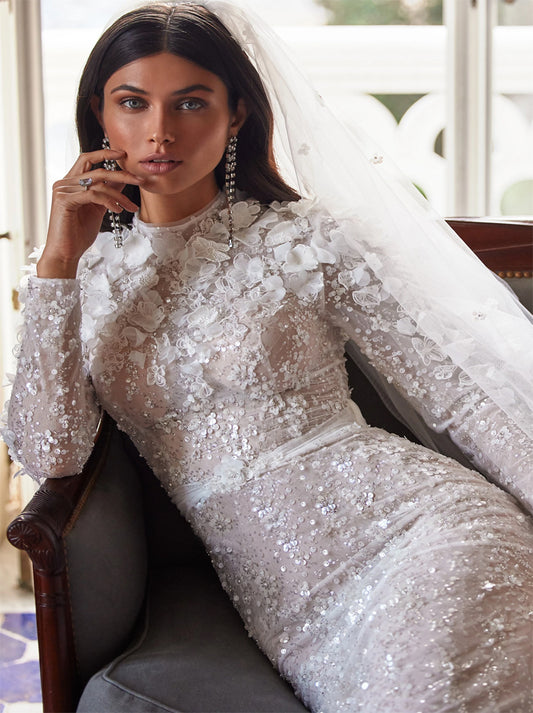 Sparkling & Elegant Mermaid Wedding Dresses Jewel Sequins Appliqued Tulle Sweep Train Bridal Gowns Custom Made