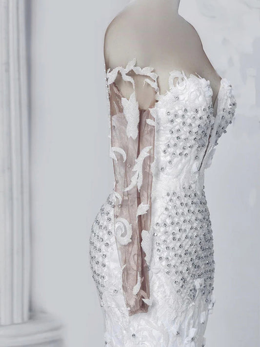 Luxurious & Sparkling Mermaid Wedding Dresses Sweetheart Sleeveless Beads Rhinestone Pearls Floor Length Boho Bridal Gowns Custom Made