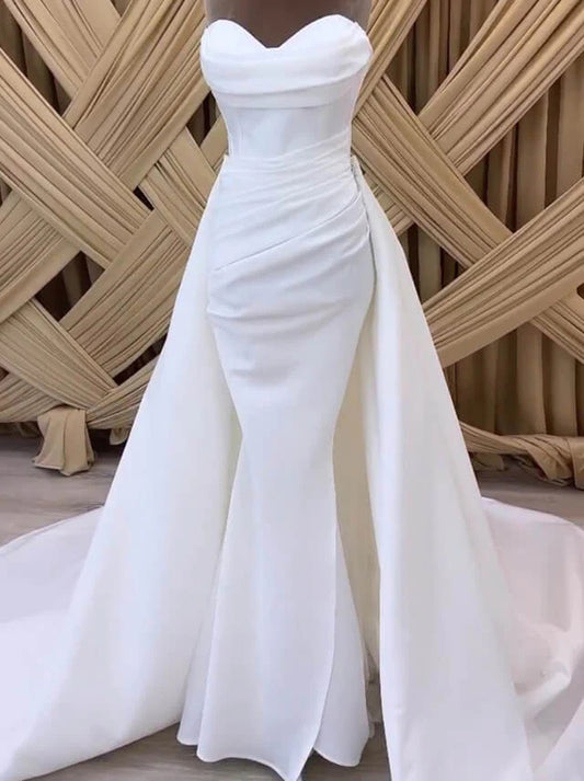 Simple Mermaid Wedding Dresses Sweetheart Pleated Sleeveless Detachable Court Train Satin Bridal Gowns Custom Made