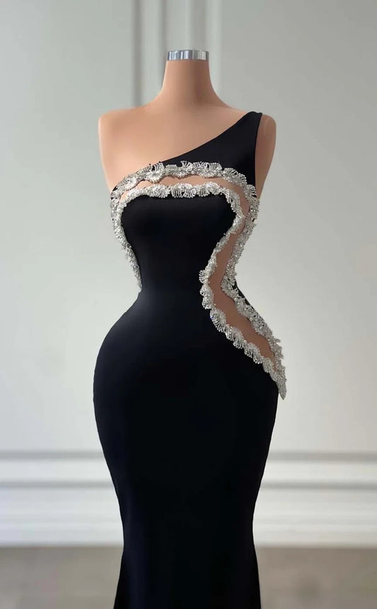 RP888-New Black Mermaid One Shoulder Appliqued Prom Evening Dresses Formal Party Gowns With Cut-out