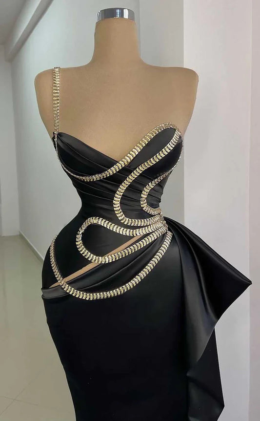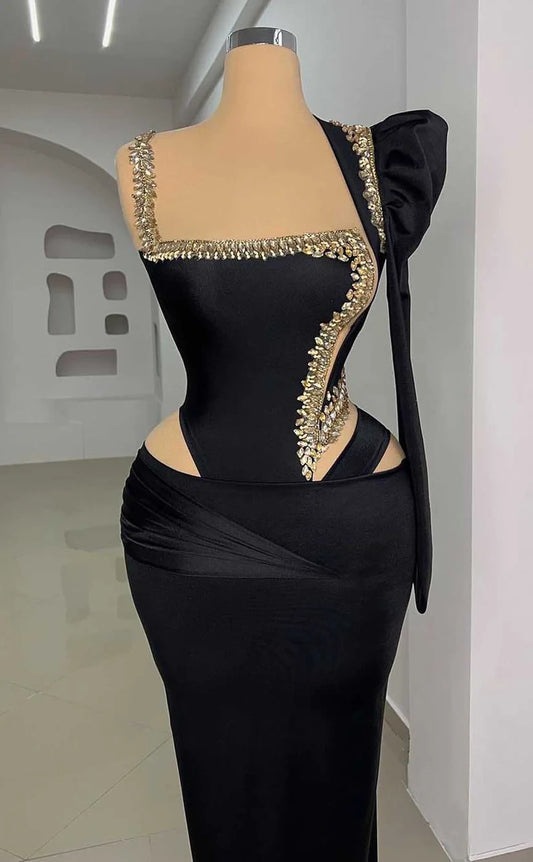 RP909-New Black Mermaid One Shoulder Ruched Beads Crystals Prom Evening Dresses Formal Party Gowns