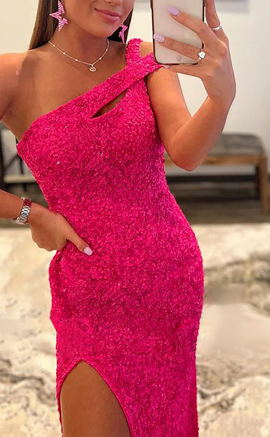 RP057-Sexy Mermaid One Shoulder Backlesss Side Split Sequins Long Floor Length Prom Evening Dresses Party Gowns
