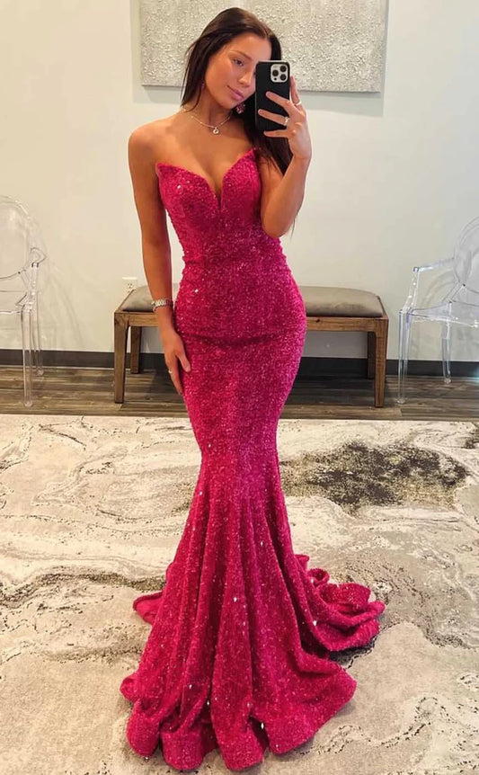 RP052-Sexy Sparkling Mermaid Sweetheart Zipper Sweep Train Sequins Formal Occasions Prom Evening Dresses Party Gowns