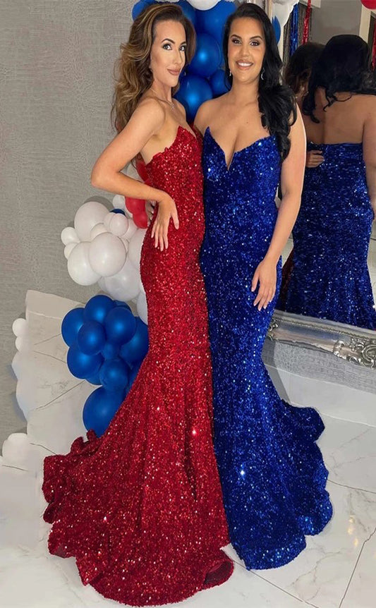 RP099-Sparking Sexy Mermaid V-Neck Beads Sequins Sequins Zipper Long Evening Dresses Special Party Prom Gowns