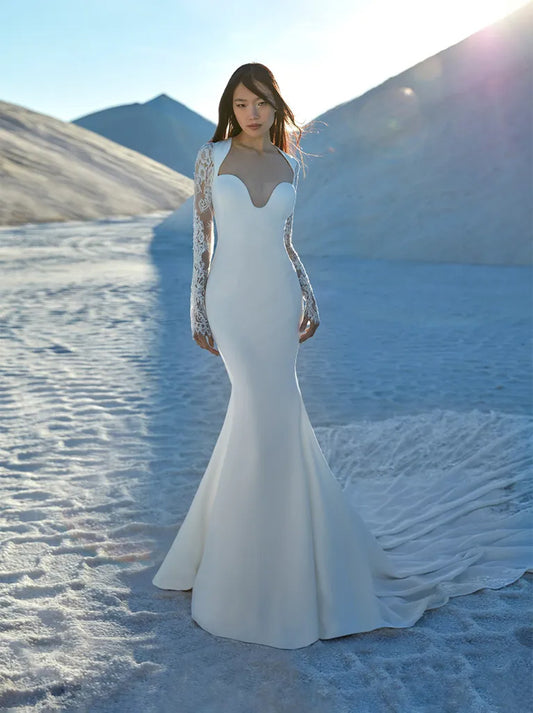 Gorgeous & Sexy Mermaid Wedding Dresses Sweetheart Appliqued Long Sleeves Satin Court Train Bridal Gowns Custom Made
