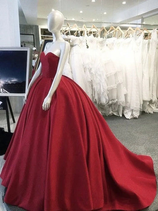 Elegant Ball Gown Wedding Dresses Sweetheart Sleeveless Lace Up Court Train Satin Bridal Gowns Custom Made