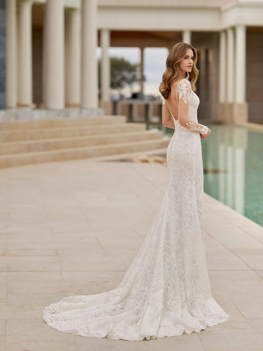Charming Mermaid Wedding Dresses Scoop Long Sleeves Backless Lace Sweep Train Bridal Gowns Custom Made