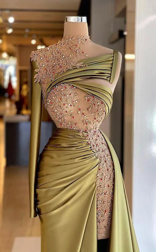 RP212-Modern Sheath/Column High Neck Beads Appliqued Long Prom Evening Dresses Formal Party Gowns With Slit