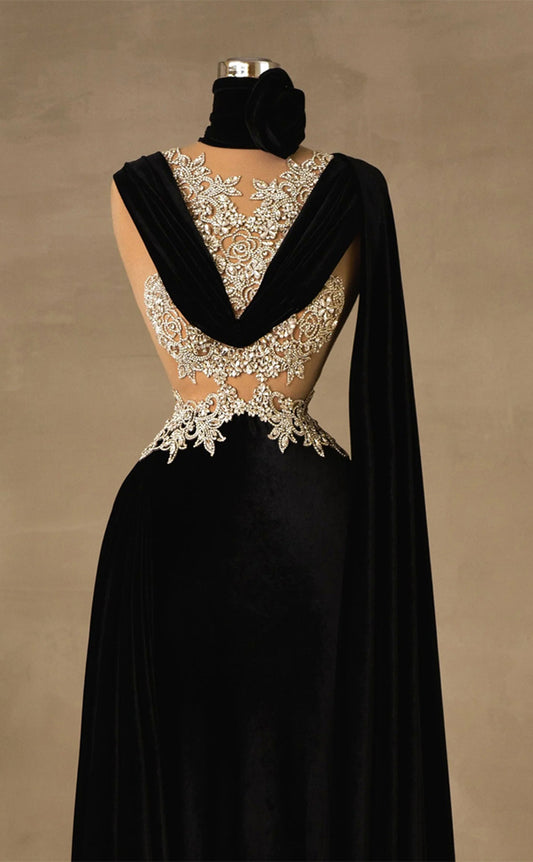 RP213-Black Sheath/Column High Neck Beads Appliqued Long Prom Evening Dresses Formal Party Gowns