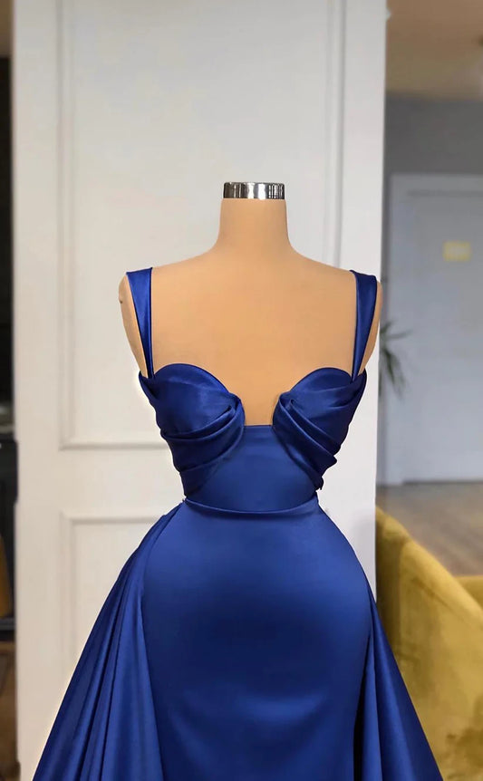 RP494-Gorgeous Royal Blue Mermaid Spaghetti Ruched Sleeveless Satin Prom Evening Dresses Formal Party Gowns
