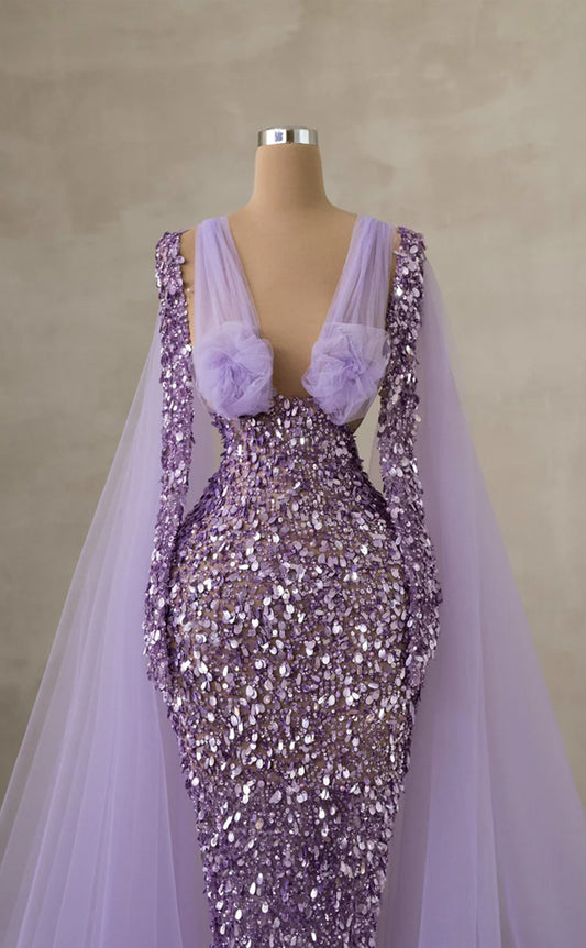 RP266-Purple Trumpet Spaghetti Beads Crystals Sequins Prom Evening Dresses Formal Party Gowns
