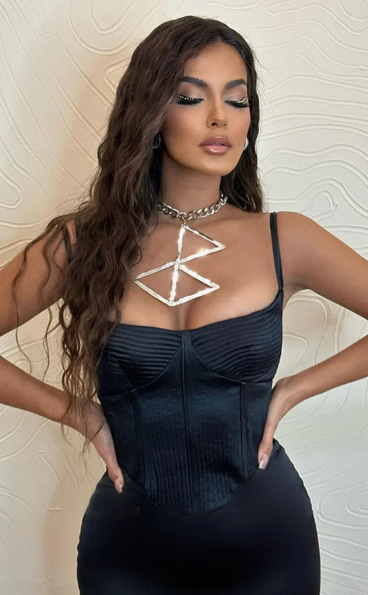 RP1981-Elegant Black Mermaid Spaghetti Pleated Beaded Sleeveless Chiffon Prom Evening Dresses Formal Party Gowns