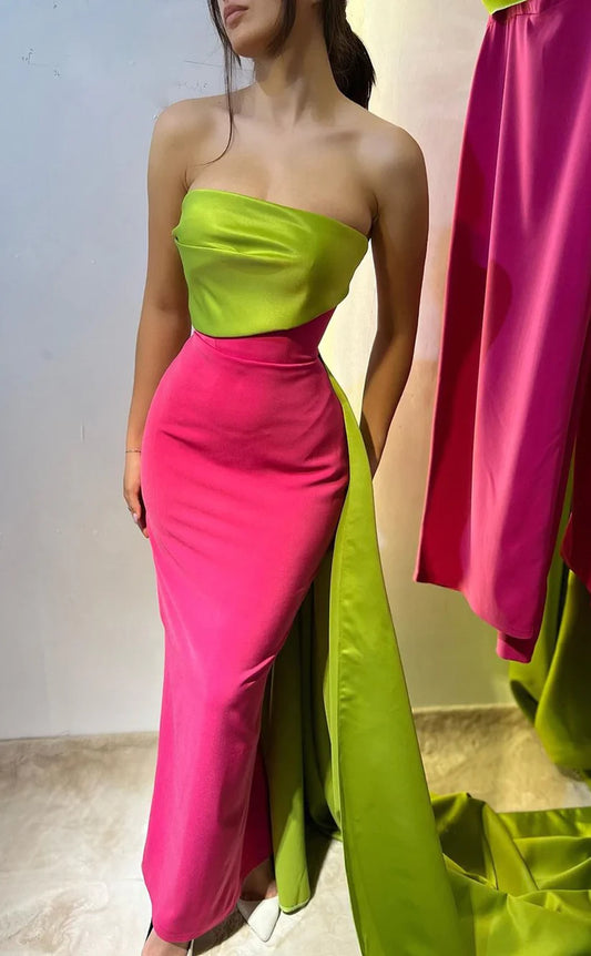 RP757-Gorgeous Fuchsia Mermaid Strapless Ruched Sleeveless Long Prom Evening Dresses Formal Party Gowns