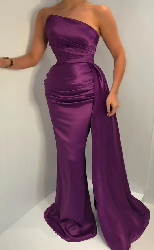 RP490-Elegant Mermaid Strapless Ruched Sleeveless Satin Prom Evening Dresses Formal Party Gowns
