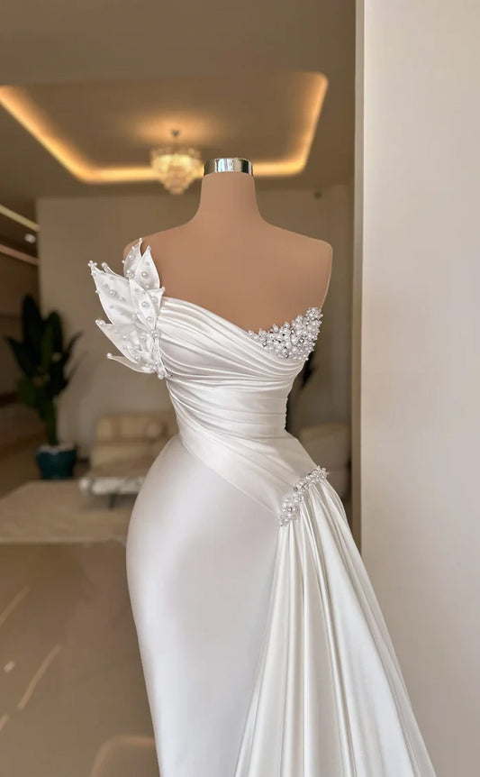 RP574-Luxury White Mermaid Sweetheart Beads Pearls Sleeveless Long Prom Evening Dresses Formal Party Gowns