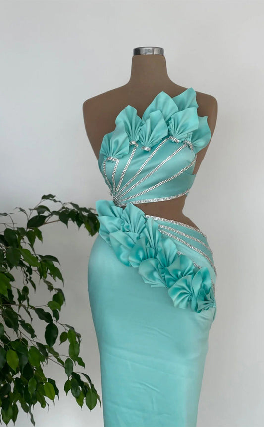 RP289-Gorgeous Turquoise Mermaid Strapless Beaded Sleeveless Prom Evening Dresses Formal Party Gowns With 3D Flowers