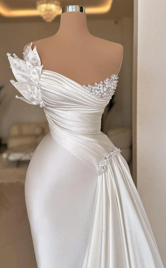 RP360-Elegant Mermaid Strapless Beads Sequins Sleeveless Prom Evening Dresses Formal Party Gowns With Flowers