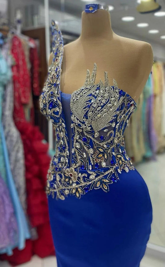 RP1272-Charming Royal Blue Mermaid Strapless Beaded Crystals Sleeveless Prom Evening Dresses Formal Party Gowns
