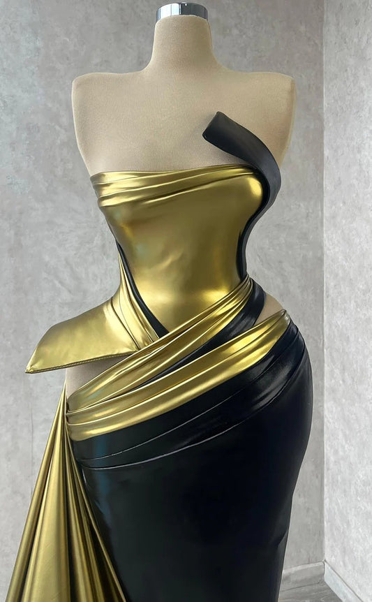 RP1243-Elegant Mermaid Strapless Ruched Sleeveless Satin Prom Evening Dresses Formal Party Gowns With Split
