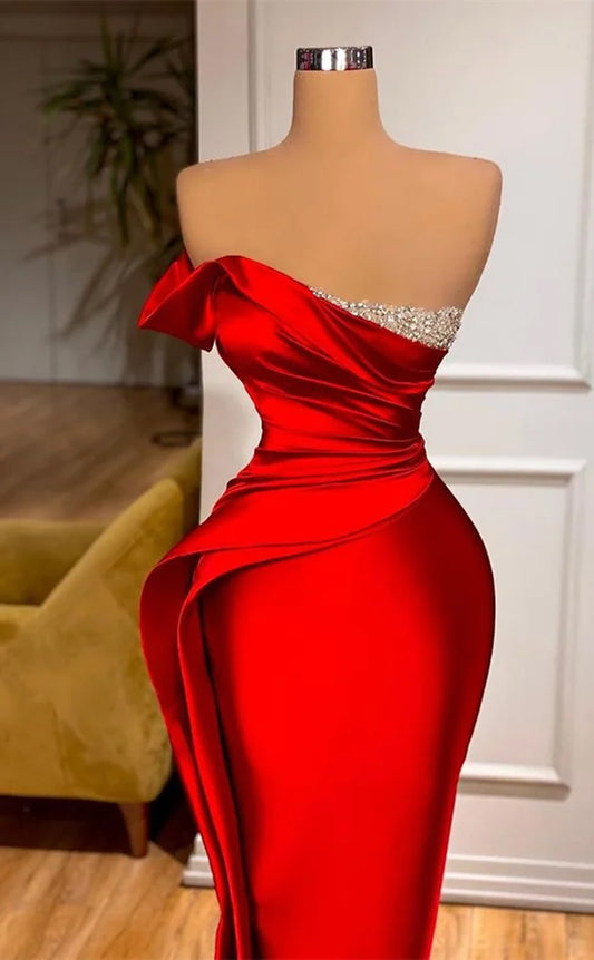 RP1145-Classic Red Mermaid Strapless Ruched Sleeveless Floor Length Prom Evening Dresses Formal Party Gowns