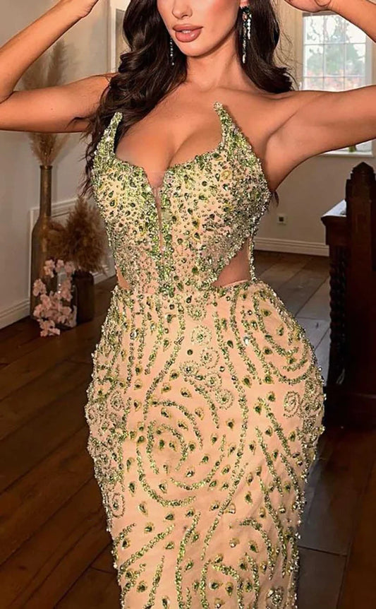 RP1022-Sparkling Mermaid Strapless Beads Sequins Sleeveless Long Prom Evening Dresses Formal Party Gowns