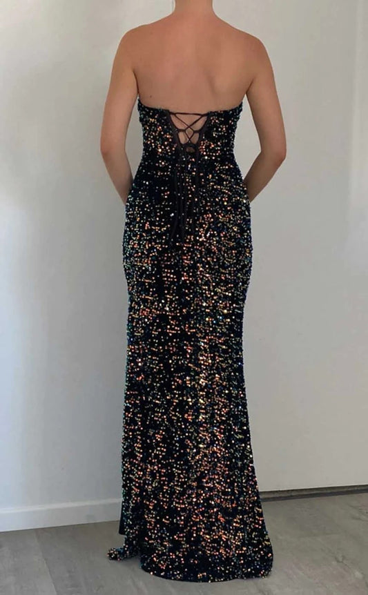 RP990-Luxurious Mermaid Sweetheart Sequins Beads Sleeveless Prom Evening Dresses Formal Party Gowns With Slit