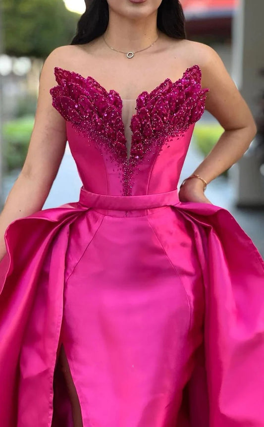 RP1005-Elegant Mermaid Fuchsia Sweetheart Beads Sleeveless Long Prom Evening Dresses Formal Party Gowns With Slit
