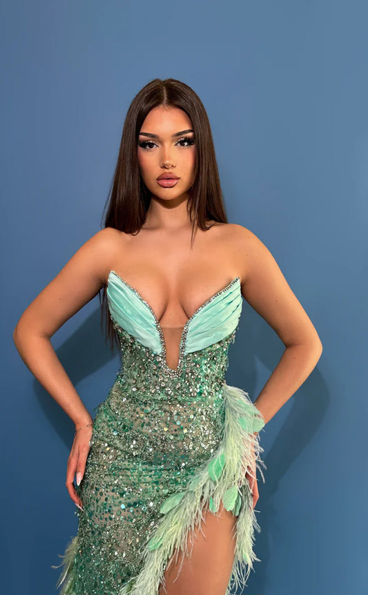 RP677-Sparkling Green Mermaid Sweetheart Sequins Crystals Sleeveless Long Prom Evening Dresses Formal Party Gowns With Slit