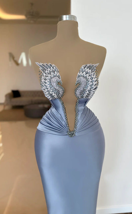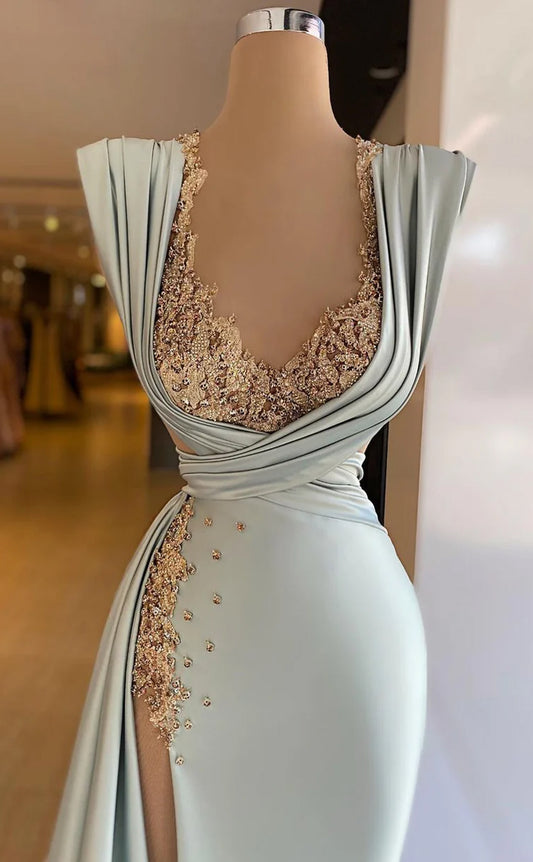 RP687-Eleagnt Sky Blue Mermaid Sweetheart Beads Ruched Sleeveless Floor Length Prom Evening Dresses Formal Party Gowns With Slit