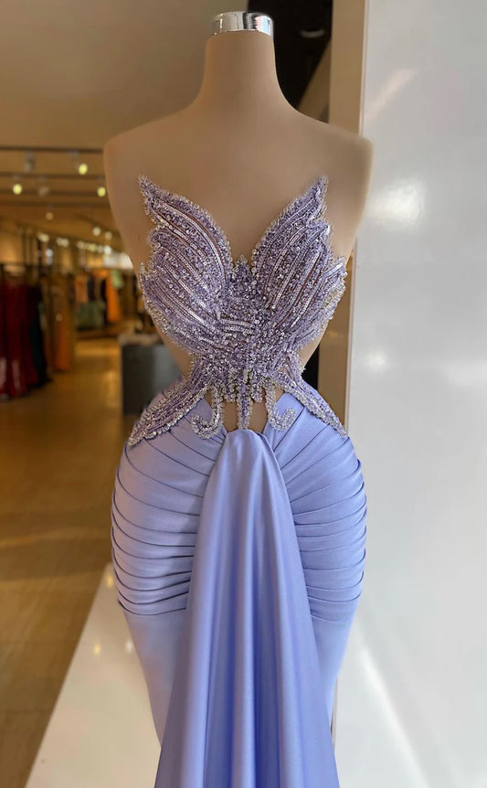 RP618-Elegant Mermaid Sweetheart Beads Sequins Ruched Sleeveless Long Prom Evening Dresses Formal Party Gowns