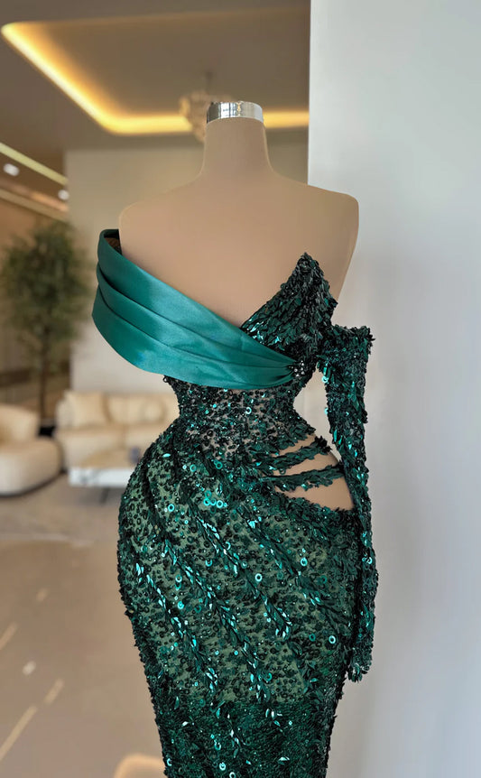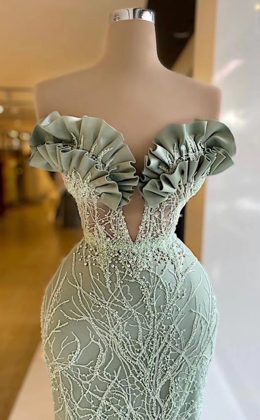 RP662-Sparkling Green Mermaid Sweetheart Crystals Beads Ruched Long Prom Evening Dresses Formal Party Gowns