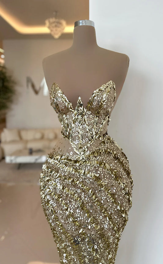 RP658-Sparkling Champaghe Mermaid Sweetheart Sequins Sleeveless Long Prom Evening Dresses Formal Party Gowns